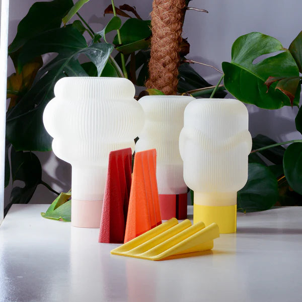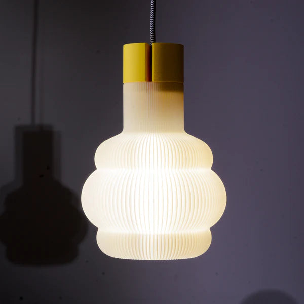 This design is brought to life through the innovative use of 3D printing technology, utilizing eco-friendly biodegradable plastics. During production, up to 10430 individual layers are added, depending on the size of the object, in a process that takes several hours to reach the final dimensions.